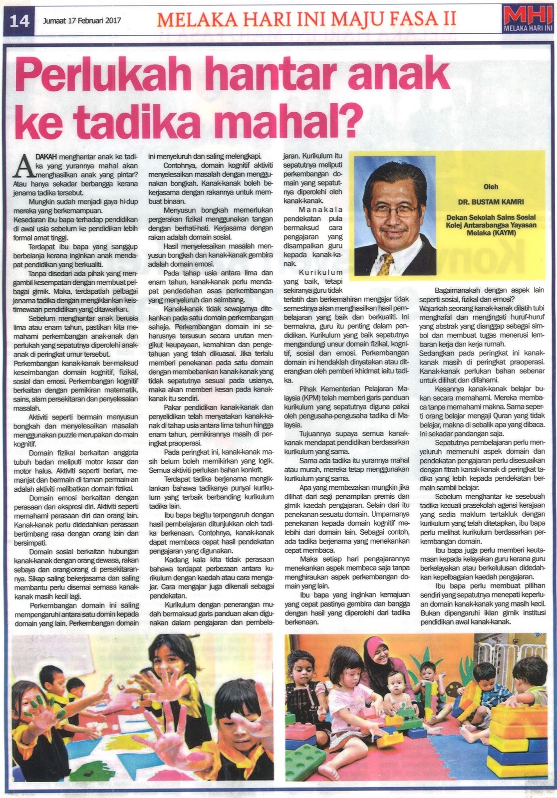 Tidak semestinya anda menghantar anak ke tadika yang mahal yurannya memberi perkhidmatan yang berkualiti. Kualiti sesebuah tadika itu bukan terletak pada yuran yang mahal.
